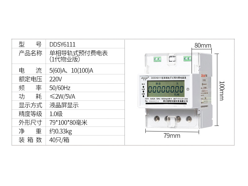 DDSY6111單相電子式導軌預付費電能表,采用微電子技術計量電能,符合GB/T17215.321-2008和GB/T18460.3- 2001標準的電表,采用全屏蔽,全密封結構,用先進的單片機處理系統進行數據的采集,處理和保存,具有良好的抗電磁干擾,低自耗節電,精度高不需校表,防竊電,高過載,長壽命、體積小、外形美觀、安裝方便等特點。